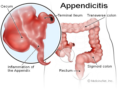 The facts seemed to be about the same in that appendicitis is caused from a blockage in the large intestine, followed by an inflammation of the appendix.   They both agreed that the appendix can be healed at times and obviously in other cases it bursts and bacteria (fecal matter) is spread into the abdominal cavity, that causes peritonitis (a collection of infected pus—gross huh?).