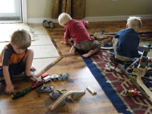 This morning we hung out at Sara’s. Her parents have a large, lovely backyard with plenty of space to run, leaves to play in and rake, apples to pick, swings and a sandbox, and a mix of shade and sun. Part of the lovely morning was just geting to be outside enjoying friends and kiddos. Thanks ladies. It’s such a light in my week. The kiddos and I love our friends, and we love playgroup!
