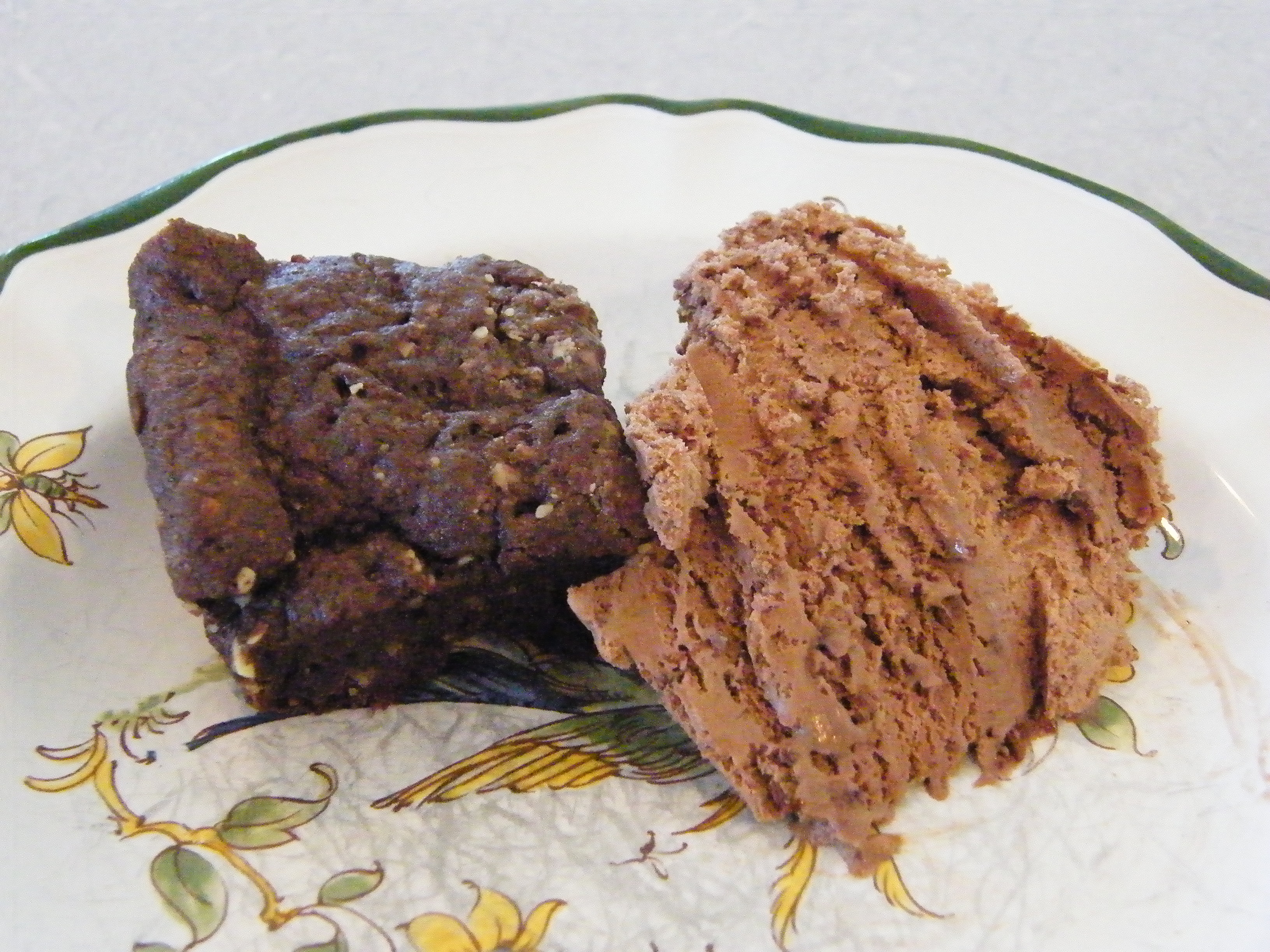 Definitely not your typical white flour brownies, but with some chocolate ice cream, I nearly forgot. Next time I’ll add a cup or so of chocolate chips for good measure.