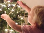 As the older kiddos helped the designer trim the tree, the grower was enthralled with the whole event. He sat right next to the tree, staring and trying to reach the lights. Oh the magic… After the tree was done, the designer put some lights on the house and set up a tree of lights near the entry. So fun for us all. We ended our advent activty by reading Christmas Lights by Ann Fearrington, and Christmas Tree Farm by Ann Purmell.