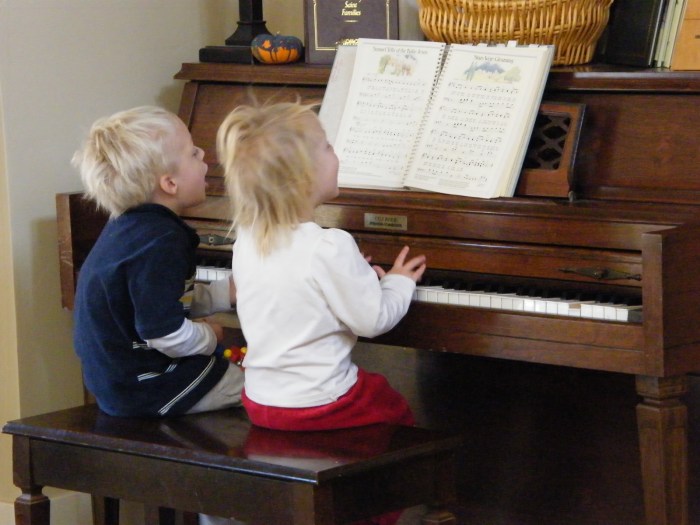 The kiddos and I had enjoyed a morning of preschool in the new house. Some of the same, a few new things too…I’ve begun teaching them some Christmas Carols: Away in A Manger, Frosty the Snowman (the builder’s request), and my personal fun favorite: I want a Hippopotamus for Christmas.