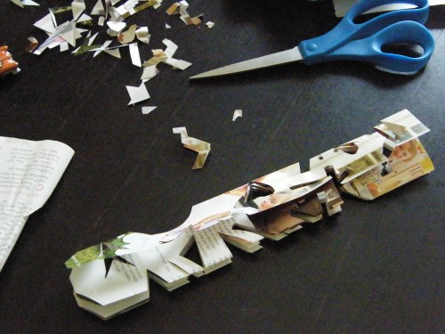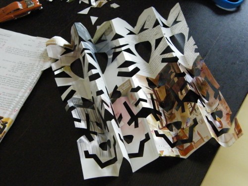 Inspired by all the snowflakes surrounding us, we began making paper snowflakes from Pottery Barn pages…
