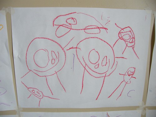 The kiddos have been busy in their own art studio.  We have a stack of drawings and paintings that they have worked on the past week and a half.  Here are some of my favs from this morning:
