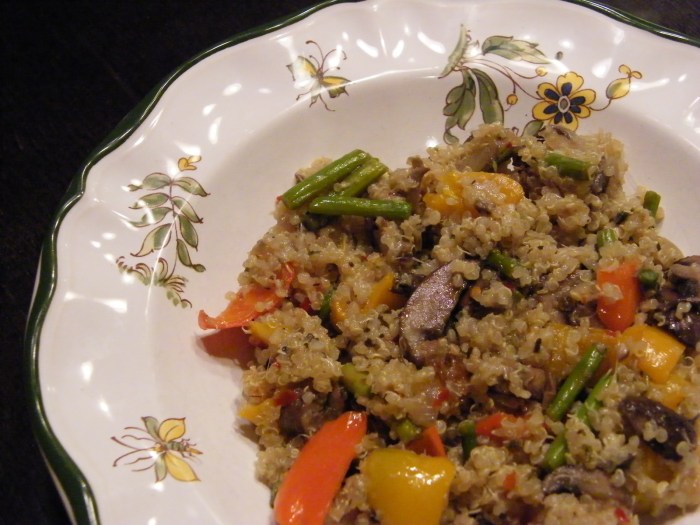 I followed the recipe in the first photo…other than adding the asparagus. Since then, we use just whatever is lying around: veggies, swiss emmental cheese, quinoa…seriously good every time…