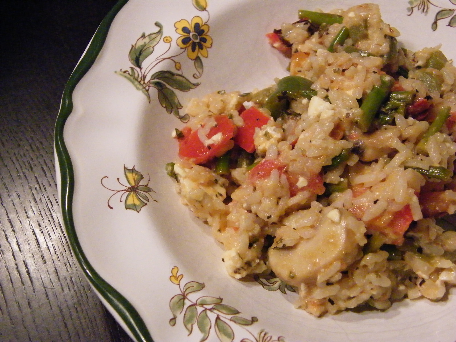 Notes: Can substitute 14 ounce can of diced tomatoes for fresh tomatoes. Any fresh herbs like oregano or basil just makes this better. We also like adding sliced mushrooms to it–saute with the onions. I’ve used yellow onions instead of green, brown rice, white rice and even orzo–arborio just gives it a rich/creamy flavor. I plan to try quinoa one day or maybe mix rice/quinoa. That would probably be good too. Last night I added two diced green peppers with the onions and just mixed it all together. ~ Stacee