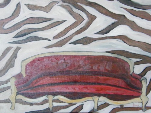 a sassy sofa, 11×14 oil on wrapped canvas, sides painted red to match, (purchase on etsy)