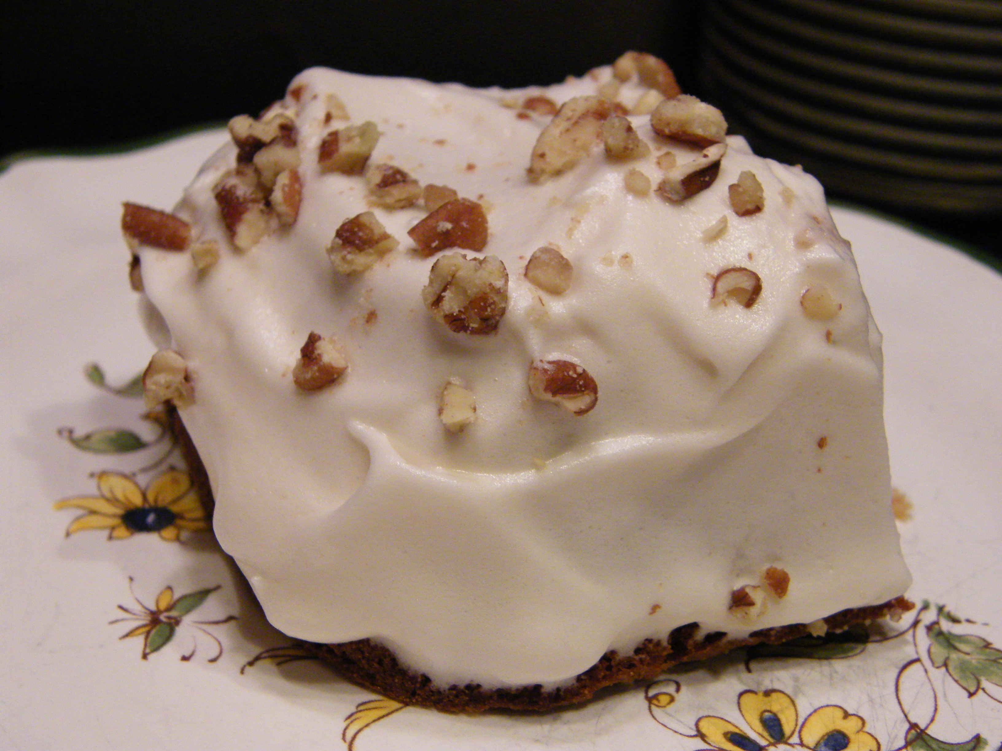 2 thoughts on “development – spelt maple cake with pecan meringue icing