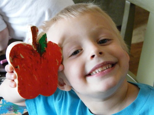I loved this apple…the builder wanted it to look, “just like a real apple, mamma, with a green leaf and brown stem!”