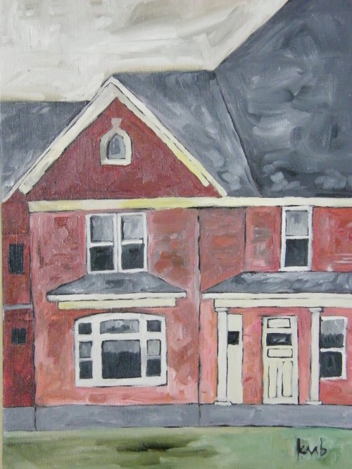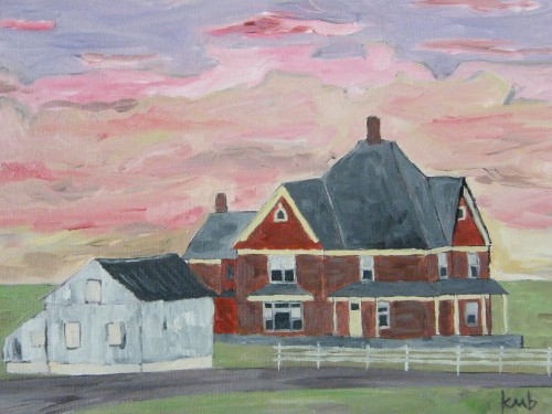 farmhouse view, 9×12 oil on wrapped canvas, sides painted green, purchase on etsy