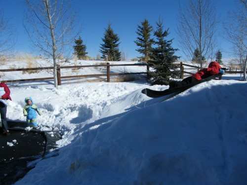 The snow has begun to melt…who knows if it will be the last of the snow, but just wanted to share some fun moments at playgroup…in Jake & Stevie’s sled park.