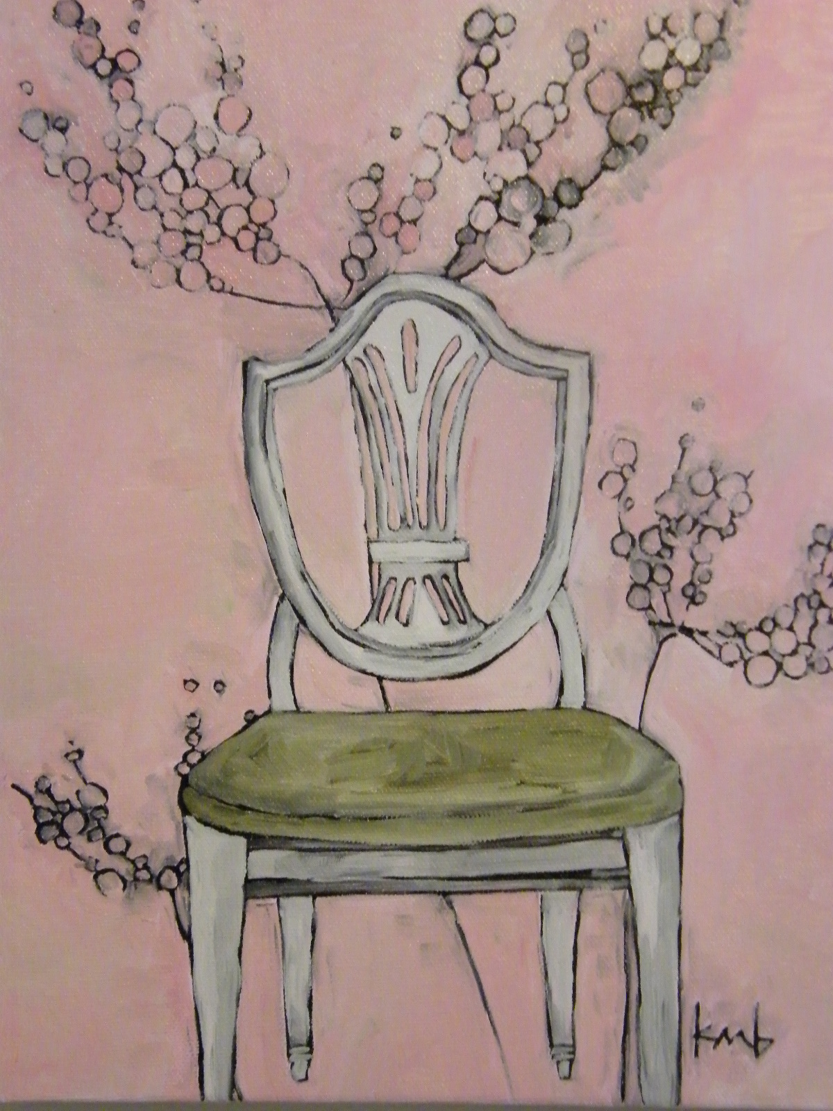 green french wheat chair, 9×12 oil on wrapped canvas