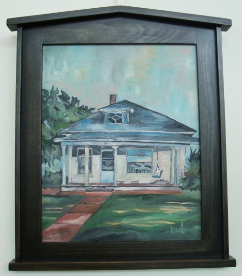 The Nyman Home in Nephi, Utah: My mother-in-law, JuLee’s childhood home. Many memories were shared there with her parents & siblings, later with her husband, Dale, & their children. One that I particularly like hearing about is Grandma Nyman telling the grandkids it was too dangerous to sleep out in the yard during “fair” time because the gypsies would carry them away in the night. There is a carport next to the east side of the home, but new owners, cars, and the fact that the carport wasn’t always there…I chose not to include it in the painting. Nephi has changed quite a bit since JuLee lived there, but the charming home reminds one of quieter, smaller Nephi days.  🙂