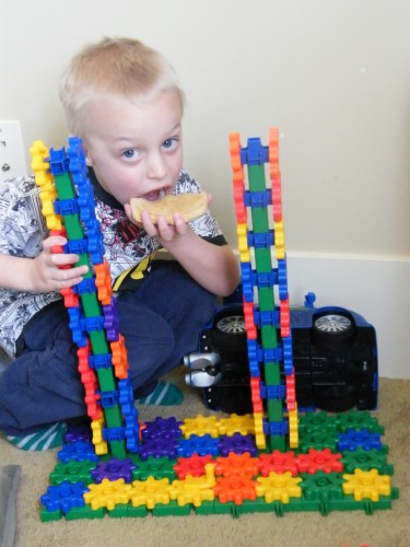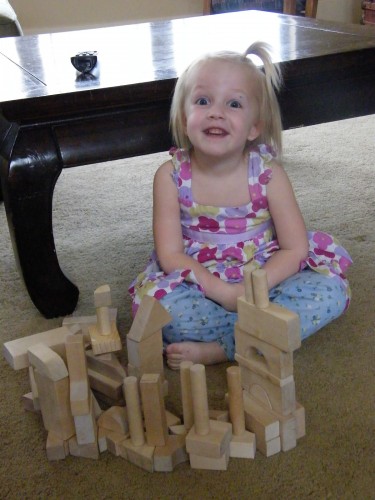We learned about moats, building strong walls, kitchens in the castles, and all sorts of cool stuff.  Soon the builder was building his own and helping his siblings build a castle of their own.