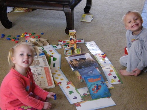 It was all so fun that they didn’t want to clean it up that night.  And we let the castles stay.