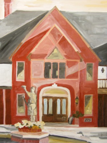 This piece was mostly done en plein air…until it was a little too cold for my summer-evening liking.  I was able to witness the love of one of the families that currently reside at 275.  Sisters playing together, walking with their dad strolling the baby.  Parents playing a game of “butts up” in the driveway while the girls drove their battery car, taking in and out their pretend children…fastening their seat-belts, and visiting friend’s homes.  The quilt continues to grow, adding new pieces of love.  ~ katrina