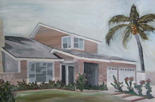 My parents moved us to Yorba Linda half-way through my kindergarten year. They still live in that house. I love that. Learning and growing up along side many of the same classmates through high school was a real treasure. One of those treasures that has blessed my life is John Gibson. I don’t know where my class photos from grade school are (kinda think they burned in the fire), but I can still see John’s photo from Ms. Lauffler’s class (how did she spell her name?). John has always been a bright spot. His smile is contagious, his sense of humor delightful, and his laugh delicious. He made everyone happy and I knew he would be happy no matter what he chose to become, where he would live or what lucky person(s) would enjoy his love and vitality. I smile and laugh at his posts on Facebook at least once a week. Yes, he still makes me smile on a regular basis. Thank you Facebook! Not too long ago, he commissioned a painting of he and Jason’s home. Thanks so much for thinking of me John! I had a wonderful time painting your special place. Congrats to you both. And here’s to another incredible 9! xoxo ~ katrina