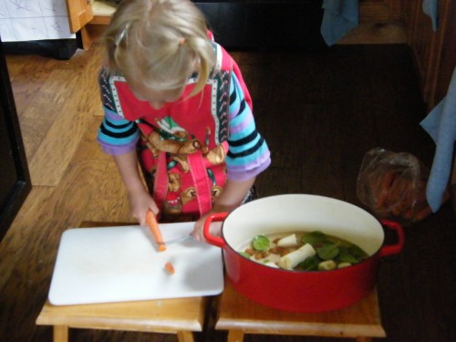 Last weekend made another first: the first girls night out for the dancer and I. The boys had gone to Father’s and Son’s Campout and we enjoyed making Valentines together, painting, and she created her very own soup recipe…chopped and prepared her ingredients herself. I took a short video of her chopping the carrots. Yes, I believe she is a Master Chef in the making…really my hope is for her to feel comfortable in the kitchen, creating, eating, and feeding those she loves with healthy food. You go lil’ dancer!