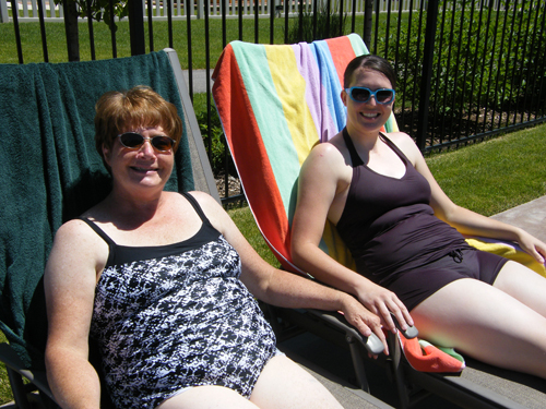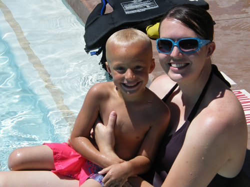 We have loved spending time with family and friends at the pool…here are some fun pics of Grandma & Brit basking and soaking with the designer and kiddos while I was painting away at the easel inside.