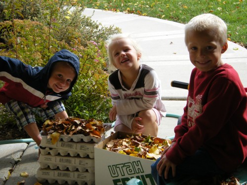 They’ve enjoyed the leaves, again and again. They love to rake them up into piles, put them in egg cartons and recycling boxes. Sometimes they give them away. Other times they remove them from our neighbors’ yards. We love our neighbors.