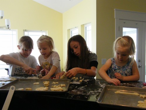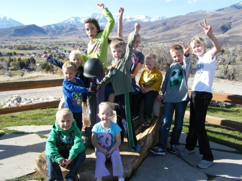 After reading the article I was reminded of our latest day off from school: we’d spent most of it with our cousins.  My SIL and I enjoyed the 12 kiddos that day by taking them on a windy hike up Memorial Hill.  Afterwards we ate lunch and they rolled out sugar cookie dough, cut out favorite shapes and made their own creations.  We inserted younger cousins between the older ones and found that they were not only helping eachother, but finding some great fun creating together.  They finished off the excitement with a football game out on the lawn (the first for several of them).