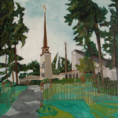 sweden temple 16×16 oil on masonite board