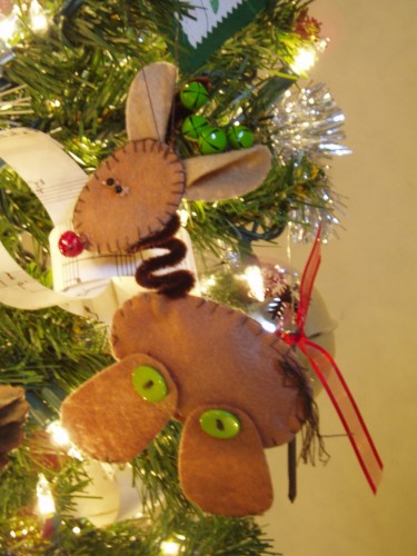 The dancer was project ready…determined to make the felt ornament from a kit.
