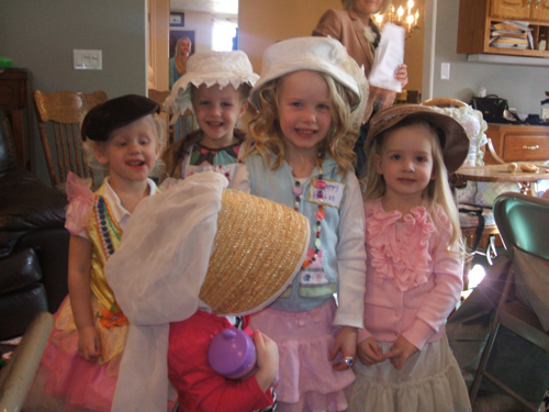 The littlest lovelies dressed in her hats and gloves. The dancer was in absolute heaven surrounded by girl cousins to play with and enjoy. On the way home and since, she has been planning a play-date with the darling gals.