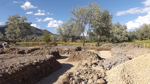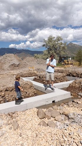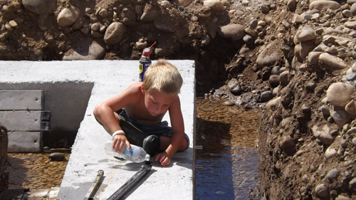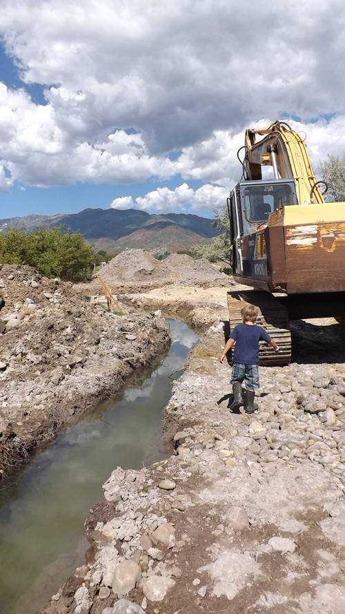 Paul, John & Tyson had the footings dug, and Lance Excavating had dug through pot rock all week for the water line.  The designer, explorer, and I went to check everything out on Labor Day…since there had been rain.