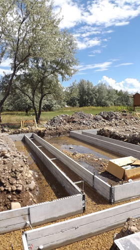 We arrived to find the water trench full…as well as around the poured footings and…the footings waiting to be poured.