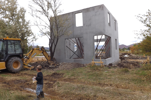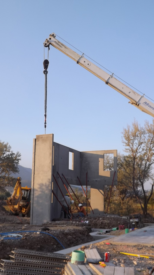 First, Paul and his crew poured part of the driveway where they put the wall forms, filled them with rebar and openings for the windows before filling them with concrete. After curing for a few days, the crane would safely lift them into place.