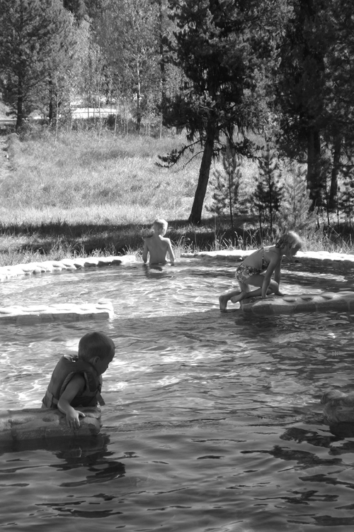 We spent our afternoons at the local hot spring: Gold Fork Hot Springswhich we totally enjoyed…the locals all told us to come back when it is snowing…  The kiddos got a kick out of sitting in the lowest pool and having a couple local cows wander on up and enjoy the spring with them.  We learned that Idaho is not just serious about potatoes.  There were open ranging cattle in much of the mountain areas we explored that weekend.