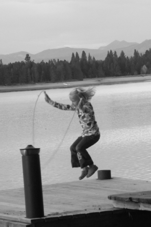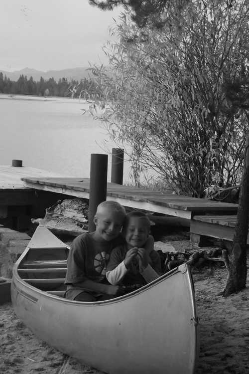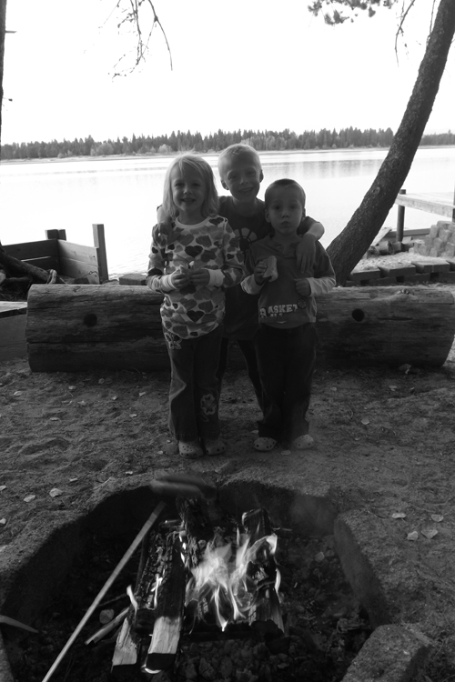 Back at the awesome cabin, we had dinner and smores ’round the fire.  The kiddos loved to play and explore on the dock and all around the cabin.  We even went canoeing to the other side of the lake one morning.  Found a mother bear and a couple bear cubs’ footprints in the sand…fresh from a couple hours earlier we guessed.  New friends that we met at the hot spring let us borrow life jackets…which we really appreciated as we nearly tipped a couple times!