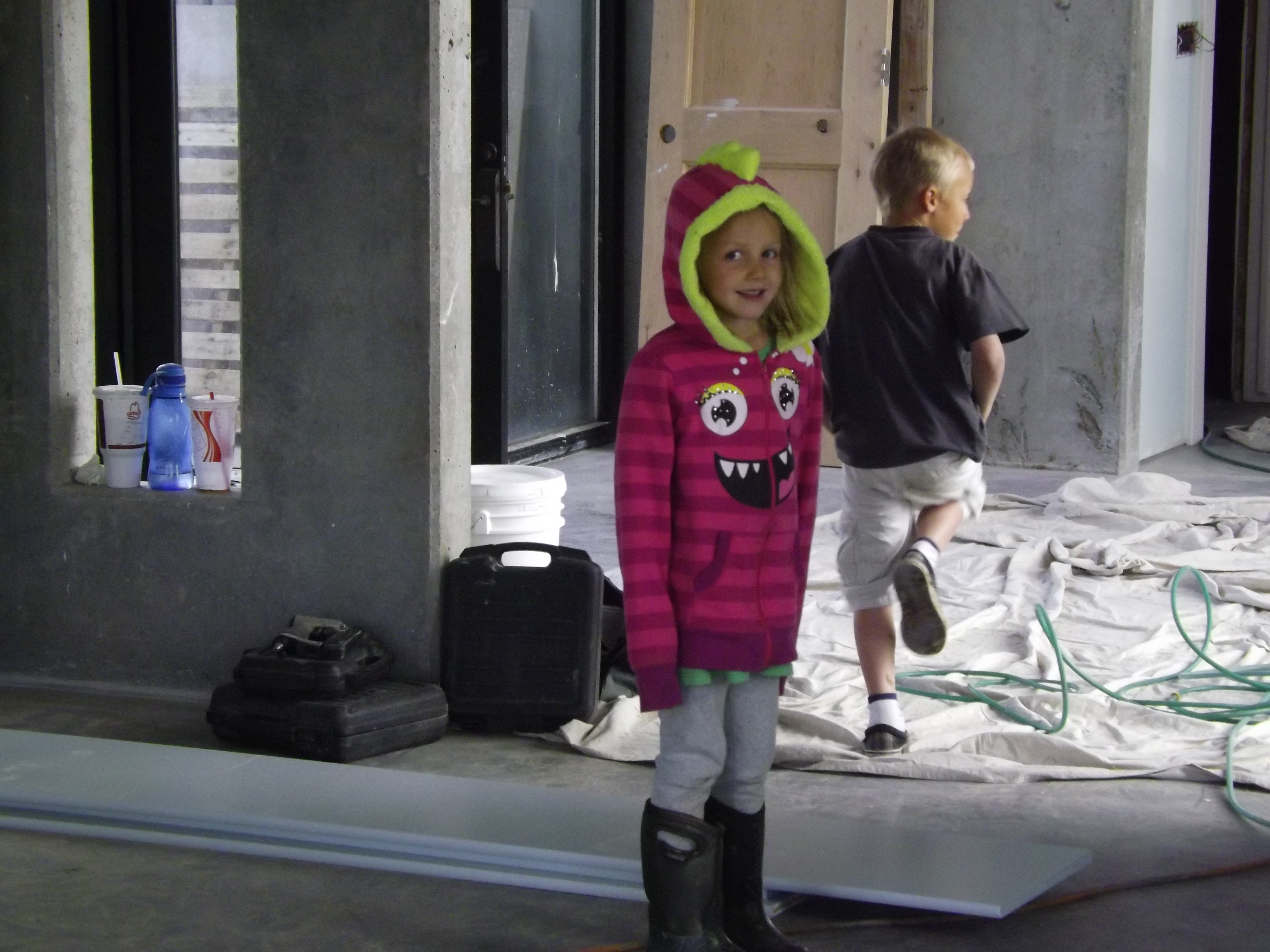 Meanwhile, the dancer and explorer were helping Cory and Brett by shop-vac-ing the living room where sawdust has taken over a bit.